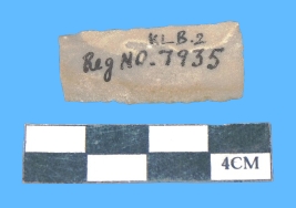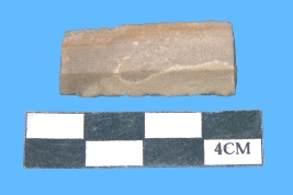 | Description / विवरण | A fragment of parallel side blade in brownish color and both margins are serrated. |