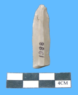 | Description / विवरण | A fragment of parallel side blade in dark brownish color with smooth surface and both sides are serrated. |