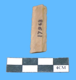 | Description / विवरण | A fragment of parallel side blade in brownish color with smooth surface having serrated on both sides. |