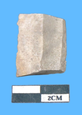 | Description / विवरण | A fragment of parallel side blade greyish in color having serrated on both sides with rough surface. |