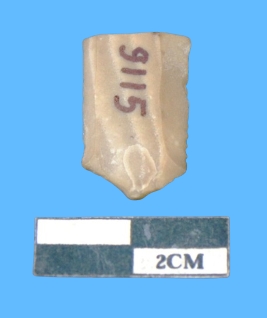 | Description / विवरण | A fragment of parallel side blade with grayish in color having serrated on both sides. |