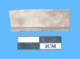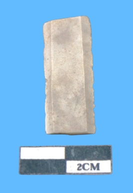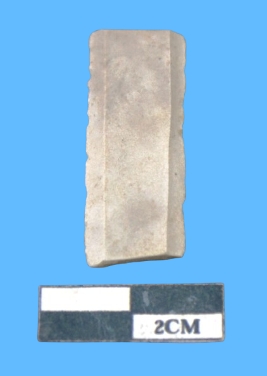 | Description / विवरण | A fragment of parallel side blade with smooth surface having greyish in color and serrated on both sides. |