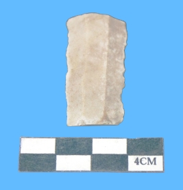 | Description / विवरण | A fragment of parallel side blade in greyish color having serrated on both sides and smooth surface. |
