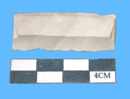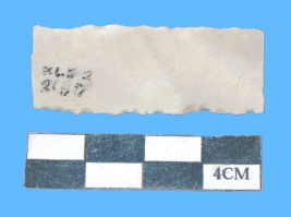| Description / विवरण | A fragment of parallel side blade in off whitish color having serrated on both sides with smooth surface. |