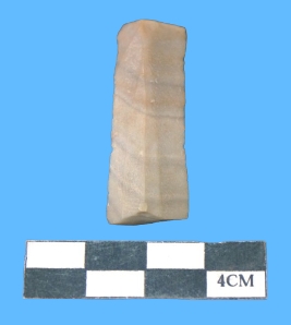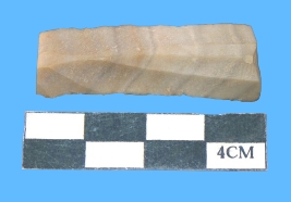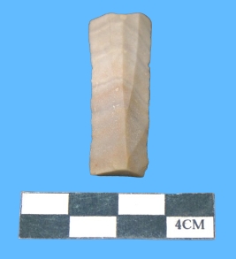 | Description / विवरण | A fragment of parallel side blade in greying color having serrated on both sides with smooth surface. |