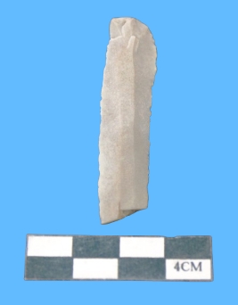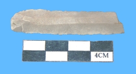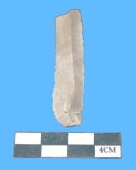 | Description / विवरण | A fragment of parallel side blade in greying having serrated on both margins with smooth surface. |