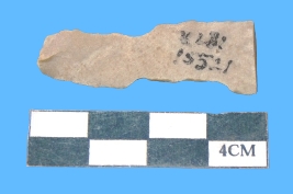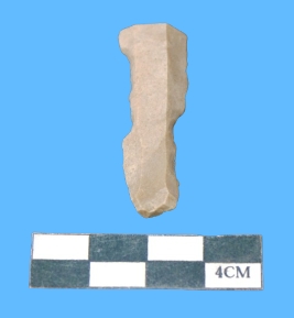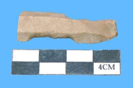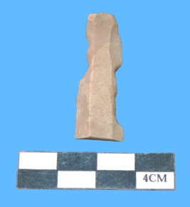 | Description / विवरण | A fragment of parallel side blade in greying in color having notched margins. The blade is narrow in the middle. |