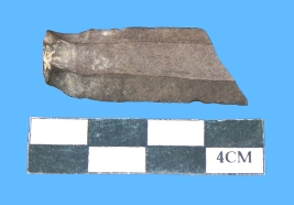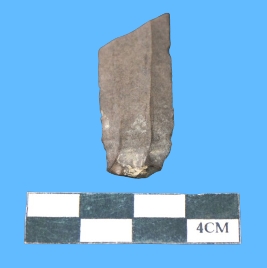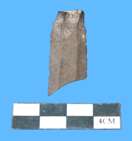 | Description / विवरण | A fragment of parallel side blade in blackish color having serrated on both margins with smooth surface. |