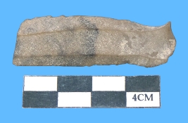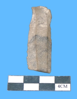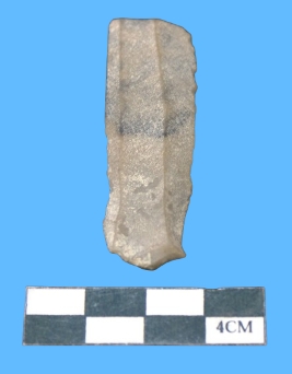 | Description / विवरण | A fragment of parallel side blade in dark brownish color having smooth surface and sharp serrated on both margins. There is a sharp knob on one end of the blade. |