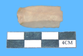 | Description / विवरण | A fragment of parallel side blade in greyish in color having smooth surface and small serrated on both sides. |