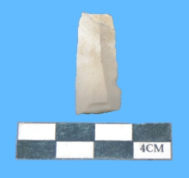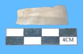 | Description / विवरण | A fragment of parallel side blade having light greyish in color with smooth surface and serrated on both sides. |