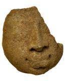 | Description / विवरण | A human face of stucco with long broad pointed nose, thick lower lip. Partly broken eye, pointed chin with slightly round face. |