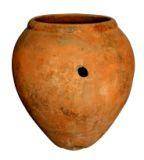 | Description / विवरण | A pyriform shaped redware pot with pointed base, slightly elongated conical body, constricted neck with thick blunt projected rim. A whole on the shoulder is seen. |