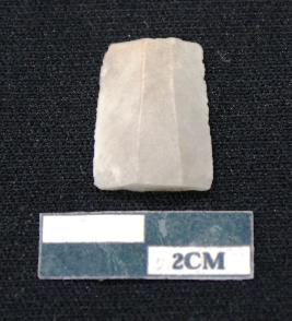 | Description / विवरण | A fragment of parallel side blade in greyish in color having serrated on both sides with smooth surface. |