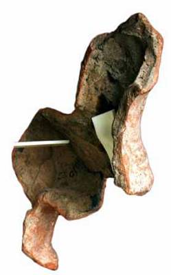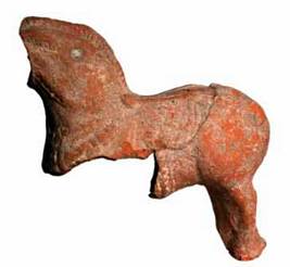| Description / विवरण | It is double mould terracotta figure of Horse, lateral portion is available. It shows trimmed hair on its neck, decorated with rattles around its neck and across the abdomen. Head, legs, tail portions are broken. |
