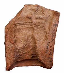 | Description / विवरण | A mould showing the lower part of a male figurine with beaded waist and other decorations. |