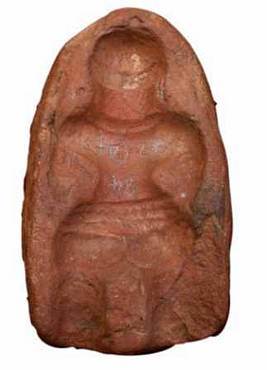 | Description / विवरण | A mould of a standing figurine. Backside depicts combed hair with simple turban, beaded waist band, wears kanta, three stringed mekhala and anklets. |