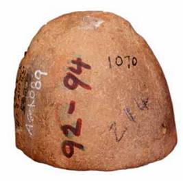 | Description / विवरण | A terracotta mould of back portion human with combed hair tied with a band. The remaining portion broken. |