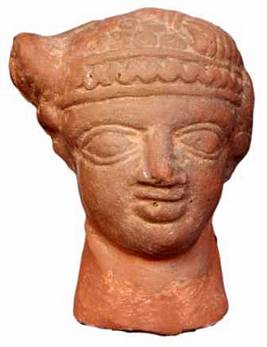 | Description / विवरण | A terracotta head of a human with elongated, slightly flattened nose, diamond shaped eyes with protruded eye balls and thick lower lip. Combed hair tied into a head dress raised and fastened at one side, and tassels are hanging on the other side. Turban has heavly decorated with beaded band in between two lines on the forehead. It is treated with fine red slip and wash. |