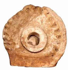 | Description / विवरण | A lotus medallion with petal marks along the outer rim. In the centre is a circular hub with a hole. |