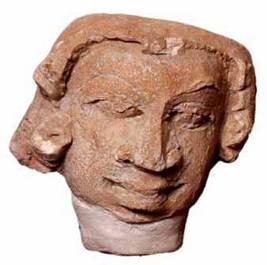 | Description / विवरण | Broken head of a human figure characterized by flat and neatly done hairdo falling on either side over the ears. Nose small but sharp, angular and pointed slightly damaged features suggest foreign origin. Round face with slightly wide open mouth. |