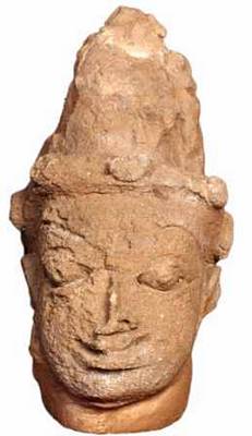 | Description / विवरण | A male head with jatamkuta and a band and crest jewel in the centre of the band, elongated nose, oval face with thick lower lip, smiling face, wide eye-brows, almond shaped eyes with slightly protruded eye balls. |