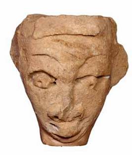 | Description / विवरण | Broken head of human figure with a broad fore head and nose which is chipped off at the tip, mouth slightly open with a thick lips which are worn out and not clear. Cheeks are very thin, left ear is seen. Thick eye brows, almond shaped eyes, slightly protruding eye balls with round pinched pupils. |