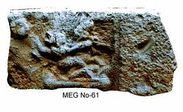 | Description / विवरण | Broken slab of a temple part depicting an erotic scenes abraded features in which a male and female engaged in sexual intercourse laying on a cot. The act of make pressing the breast of the lady with his left hand is seen prominently. The lady with her raised right hand holds the beard of the man. |