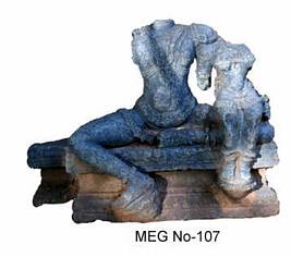 | Description / विवरण | Sculpture of a Siva and Parvati. Parvati is sitting on the left lap of Siva. The head portion is missing. Siva wears a hara with a pendant and anklets The right hand of Siva and left hand of Parvati are cut off. Parvati wears armlets, anklets and Keyura. The left hand of Parvati is broken. |