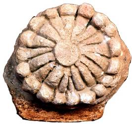 | Description / विवरण | A circular floral motif with lotus petals radiating from the central hub. |