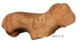 | Description / विवरण | A terracotta figure of Dog made of red clay. It has prominent snout, pinched eyes and folded ears. Legs and mouth parts are broken. There are minute holes made with slender pick on either side above the forelegs. |