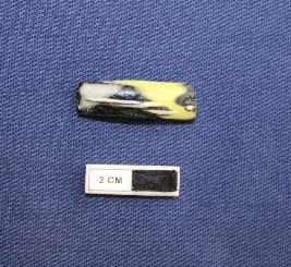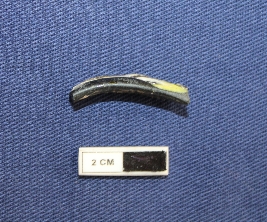 | Description / विवरण | A bangle in a circular shape. It is black and green in color. Half portion is missing. |