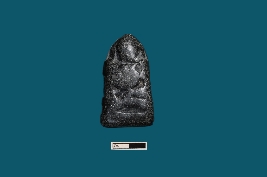 | Description / विवरण | A seated figurine of Ganesha is triangular in shape with a polished surface, though only a few parts are visible. |