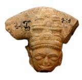 | Description / विवरण | Head of dwarapala with a moustache and eyes closed. Over the head is broad palaka containing Siva lingas in diminishing tiers one over the other with a Siva linga on a Panavatta in the middle. It is in three tiers. |