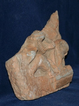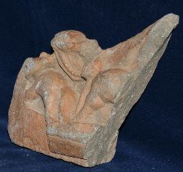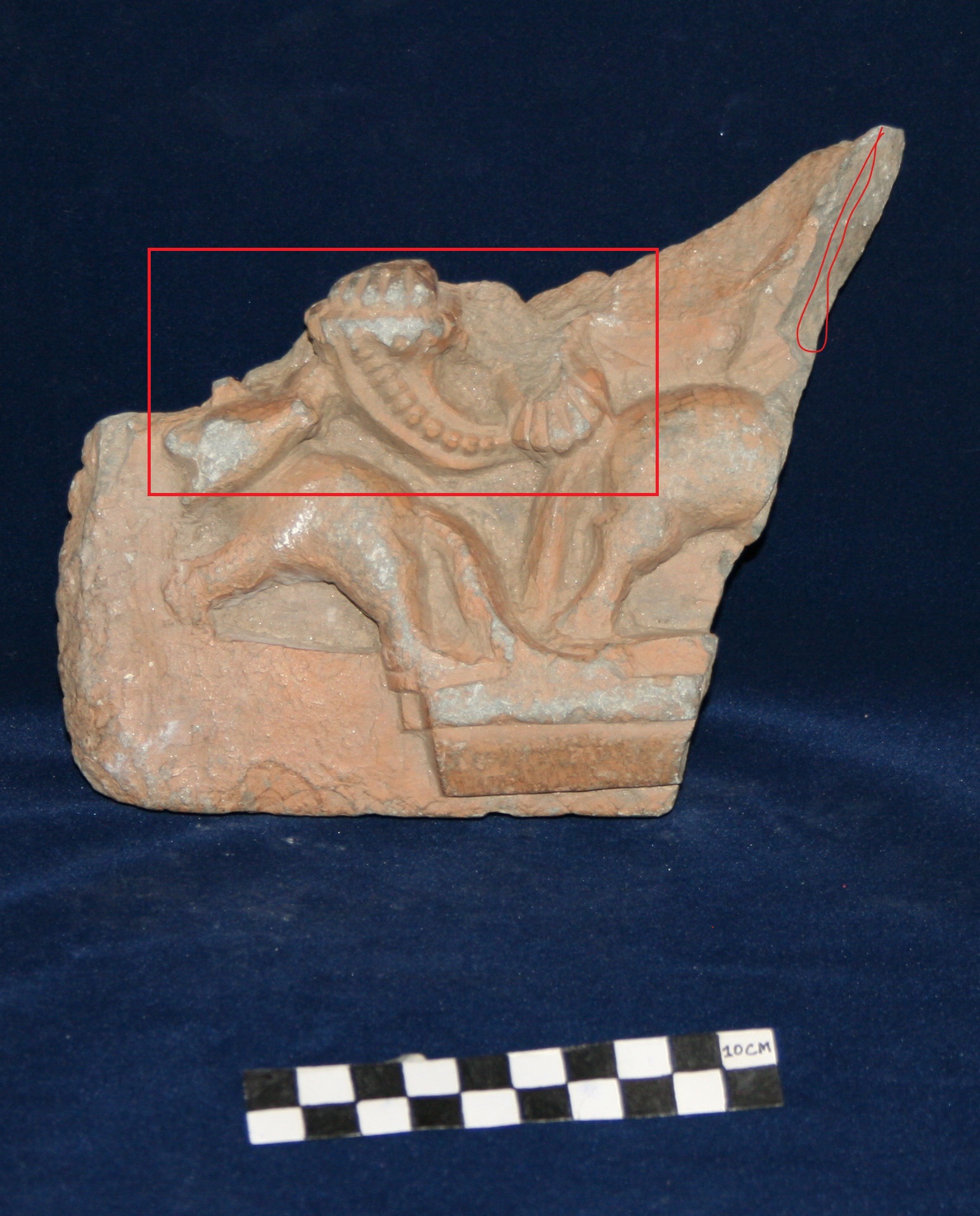 Fragment of pedestal showing two animal figurine opposite each other, right one is complete, left one is half broken(front portion is missing)