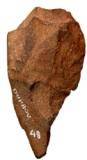 | Description / विवरण | Triangular shape hand axe or borer made on thick flake. It shows flat flaked buttend and thick pointed functional end slightly broken . Removal of flakes on lateral sides leaving mid portion untouched which suggests the application of soft hammer technique. It can be used as cleaver too. |