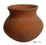 | Description / विवरण | Red ware pot with globular body and round base, slightly carinated waist, convex neck with thick everted blunt rim. Of medium fabric, it is treated with wash. |
