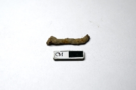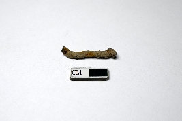 | Description / विवरण | A rusted iron nail with a partly visible working edge that is bent; the other end is also damaged. The working edge can still be identified by its narrow shape, while the opposite end is wider. |