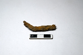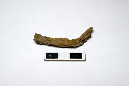 | Description / विवरण | A rusted iron nail with a bent, partly visible working edge; the other end is also damaged. The working edge is narrow, and the opposite end is wider. |