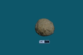 | Description / विवरण | A broken terracotta sling ball that is red in color with a rough surface. |