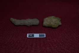 | Description / विवरण | Two pieces of iron, one is fragmented and other one has bended working edge, while the other edge is wider |