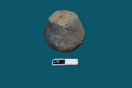 | Description / विवरण | A terracotta stopper that is grey in color with a rough surface. One side is broken, while the other side is almost rounded. |
