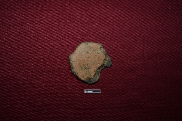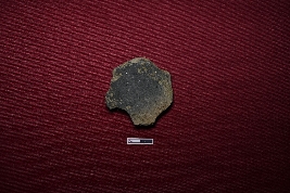 | Description / विवरण | A terracotta hopscotch piece, the object is red on the obverse and black on the reverse. The surface is partly smooth. |