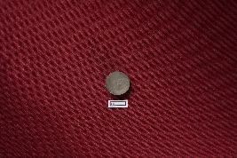 | Description / विवरण | A terracotta sling ball, red in colour, with a smooth surface. |