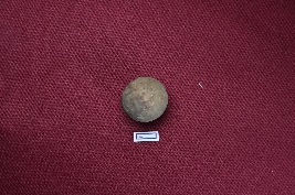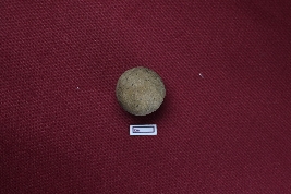 | Description / विवरण | A terracotta sling ball, grey in colour, with a smooth surface. |