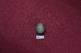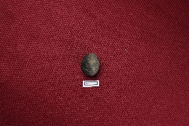 | Description / विवरण | A terracotta sling ball, black in colour, with a smooth surface. |