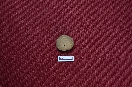 | Description / विवरण | A terracotta sling ball, red in colour, with a smooth surface. |