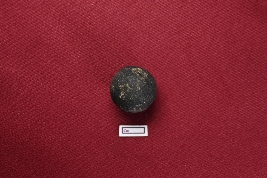 | Description / विवरण | A terracotta sling ball, red in colour, with a smooth surface. |