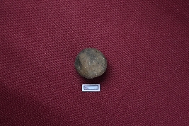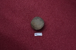 | Description / विवरण | A terracotta sling ball, blackish red in colour, with a smooth surface. |