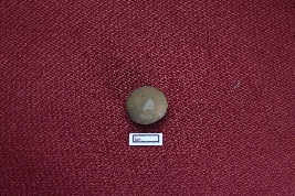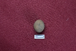 | Description / विवरण | A terracotta sling ball, almost red in colour, with a smooth surface. |